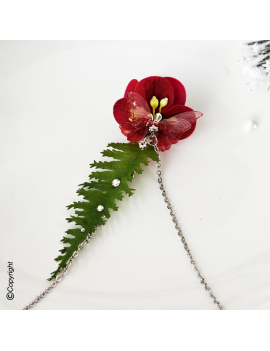 Pour les âmes amoureuses de décembre ce bijou est une étreinte de rouge et de verdure de fougère.