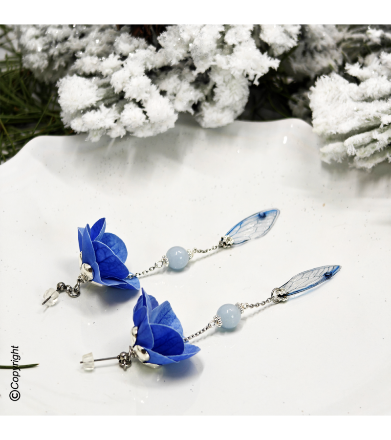 In its glass case, the blue winter flower awakens when night falls. Its soft, frosty glow accompanies dreamers in search of nature and magic.