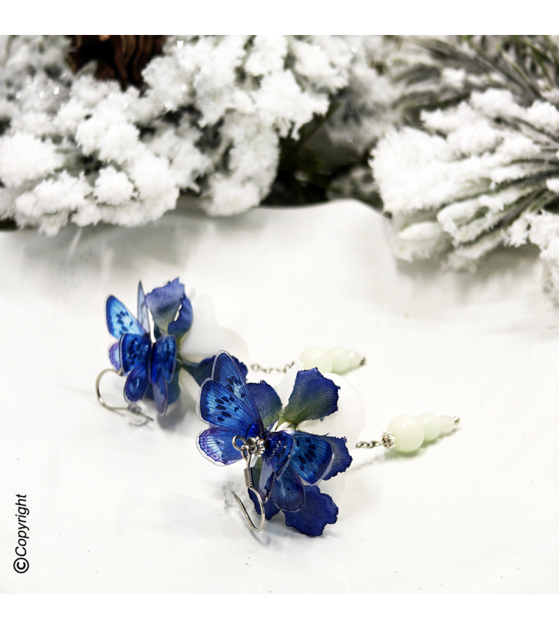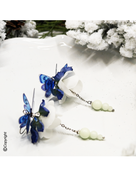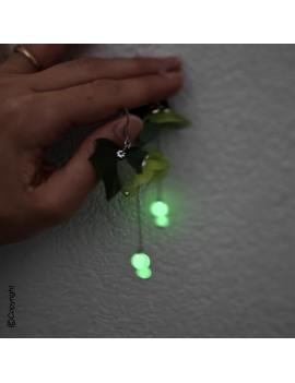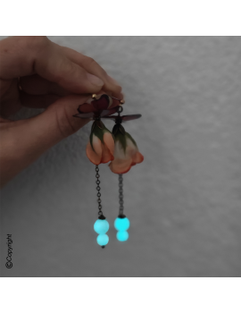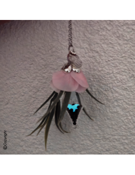 ✨ This creation is adorned with a flexible butterfly, beads phosphorescents covered with fabric flower petals.